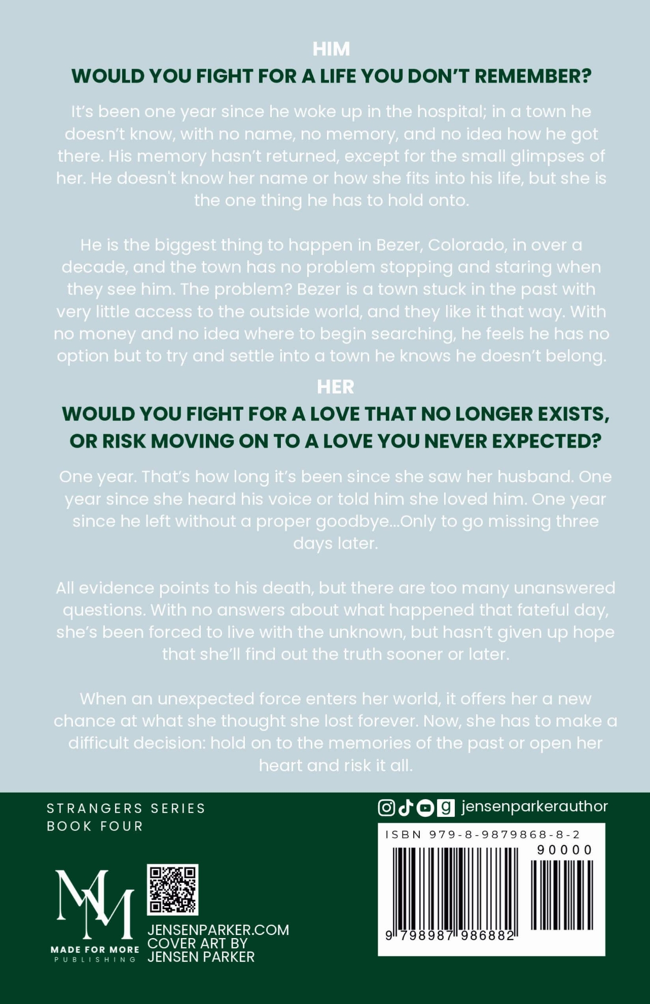 Begin Again is an amnesia, forgotten love, second chance romance. It is the fourth book of the Strangers series.
